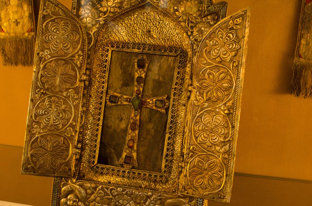 Volviendo a la catedral de Etchmiadzín, hay que decir que cuenta con un tesoro muy antiguo y muy interesante, en el que hay objetos de gran valor artístico y religioso. Algunas reliquias son de dudosa historicidad pero dan cuenta de la antigüedad de la iglesia armenia y su conexión con las primeras etapas del cristianismo. Dos de las más curiosas son la punta metálica de la lanza con la que Longinos alanceó a Jesús en el Calvario y una tabla supuestamente procedente nada menos que del arca de Noé (figura 4).