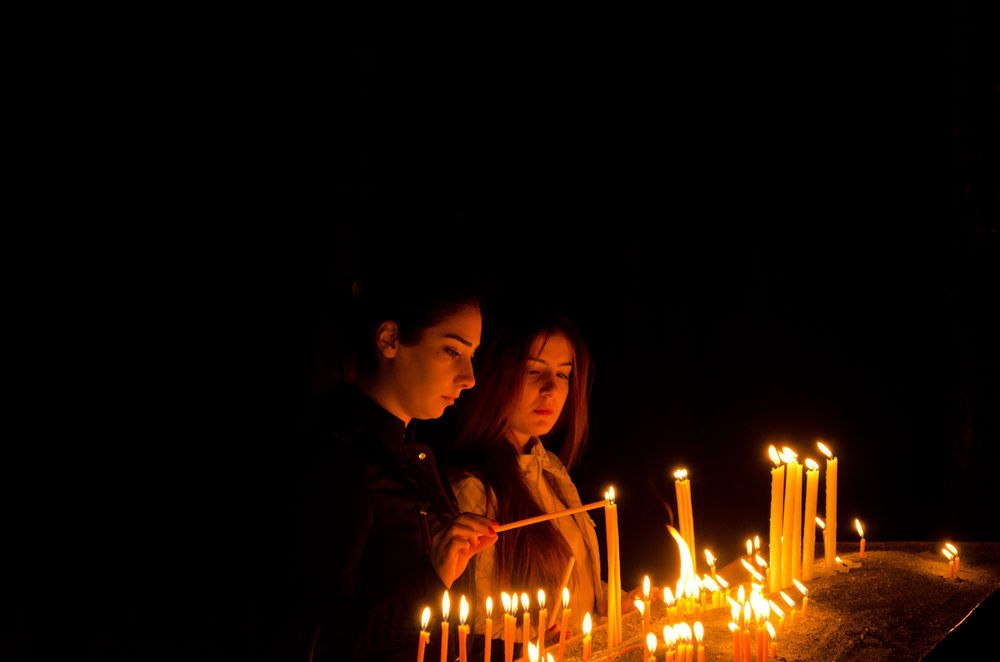 Figura 16. Fieles encendiendo velas en el monasterio de Geghard |