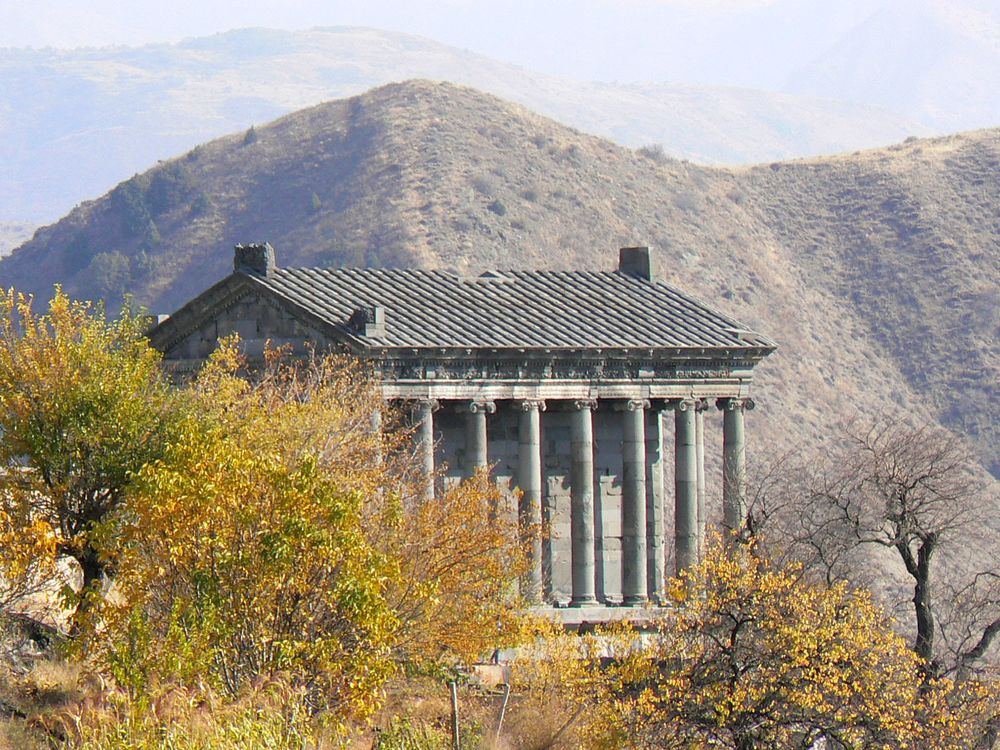 Muy cerca del monasterio de Geghard y a tan solo 30 km de la capital Ereván se encuentra el templo de Garni, un clásico templo de estilo helenístico construido por el rey Tirtidates en el siglo I de nuestra era, aunque existen otras teorías sobre el origen de esta construcción y en todo caso está claro que en el mismo lugar hubo construcciones anteriores.